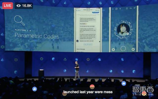 去年扎克伯格曾预言,VR/AR的最终形态是一副轻便的AR眼镜,此言论在一年里被世界各地的AR眼镜厂商不断提起。然而今年F8上,扎克伯格却意外地发布了一个基于手机摄像头信息的AR平台,矛头直指和Facebook针锋相对的AR软件Snapchat。此外,还有去年10月就展示过的VR虚拟社交形象、以及推出了Messager Platform 2.0——Messenger是一款类似微信的社交产品,具备许多微信已有的功能。
