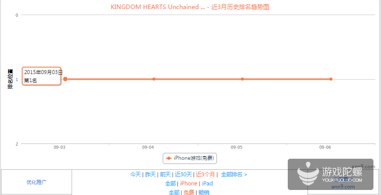 《王国之心:解放X》日本iOS免费榜排名