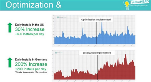ASO产生的效果(在美国市场日均安装量上升30%,在德国上升200%)