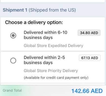 根据 Souq 页面显示,商品的标价已经包含了关税;运费上,提供了两个选项,快速(6-10 个工作日)和优先(2-5 个工作日),后者的运费要更贵一些。
