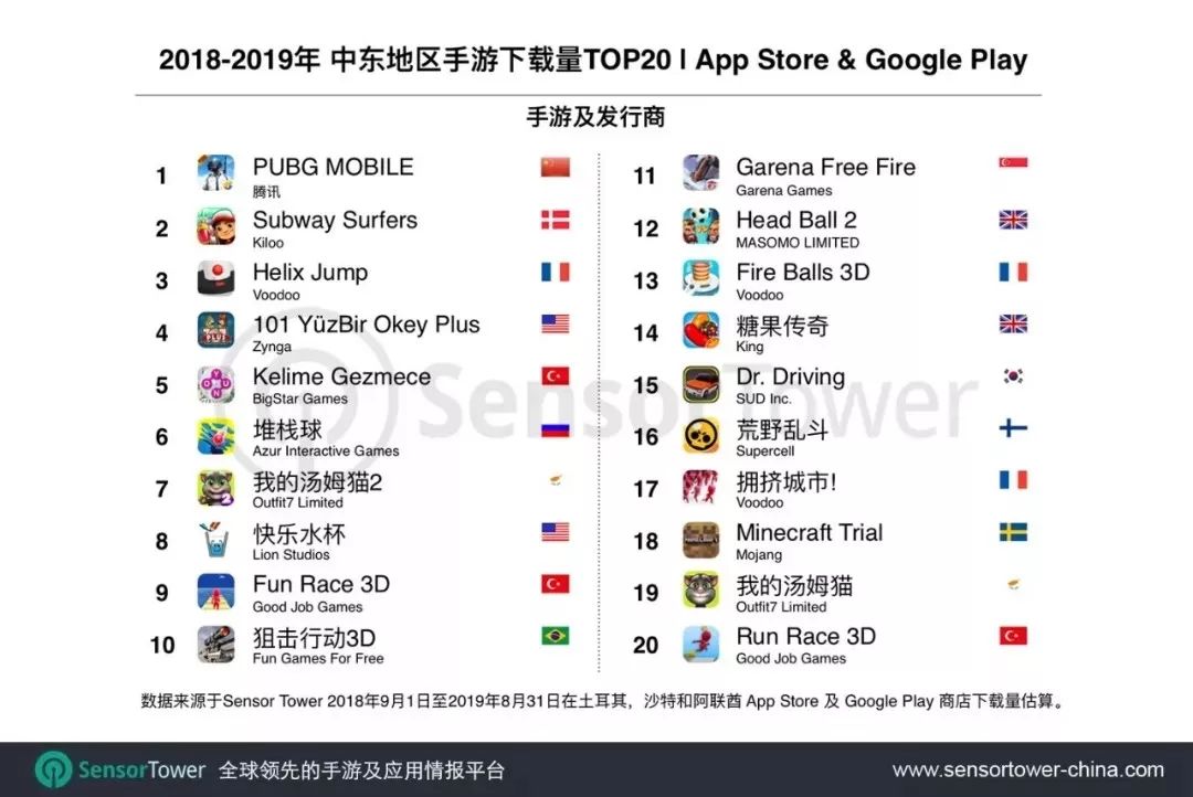 1. 下文 “中东地区” 移动游戏收入数据,来源于 Sensor Tower 商店情报平台在沙特阿拉伯,阿联酋,科威特,土耳其 ,卡塔尔,阿曼,埃及,以色列共 8 个国家 App Store 和 Google Play 预估收入总和。
