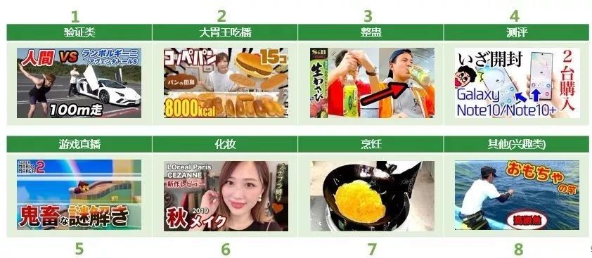 日本YouTuber视频内容类型一览