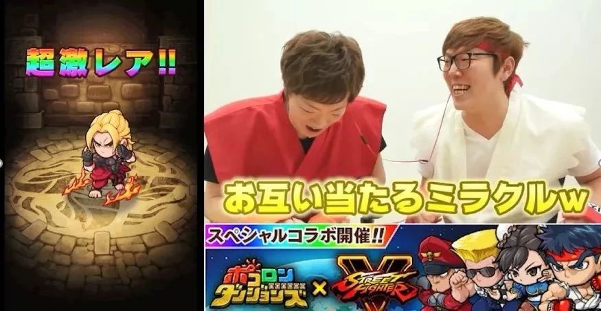 我们来看一下这个案例,刚才我们有提到的 Hikakin,Hikakin 在视频中和另一个朋友 Cos 成了《街头霸王》中的角色进行格斗,开始的内容让大家觉得非常有趣,随后两个人开始在游戏中进行十连抽,直到抽到游戏中的“街霸”联动角色为止。