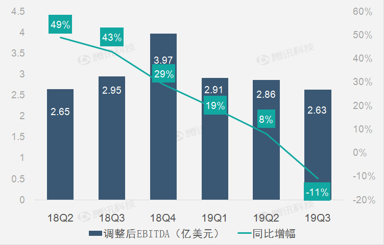 不按照美国通用会计准则,Twitter 第三季度调整后 EBITDA(即未计入利息、税费、折旧和摊销的净利润)为 2.63 亿美元,比去年同期的 2.95 亿美元下滑 10.8%。 这也是自 2017 年第二季度以来,该公司的 EBITDA 首次出现同比下滑。