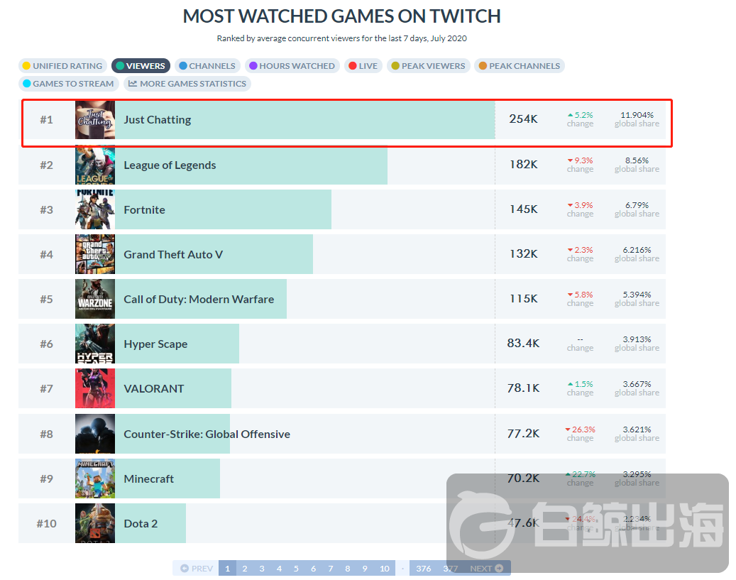 起码 Twitch 上观看人数最多的类别是 Just Chatting,在游戏之外,闲聊、吃播,在 Twitch 上已经有兴起的迹象,而且观众占比是在逐渐上升的。这一点对于破圈的 Discord 来说,是个机会。