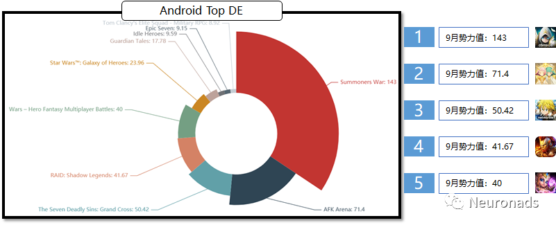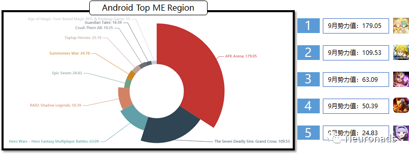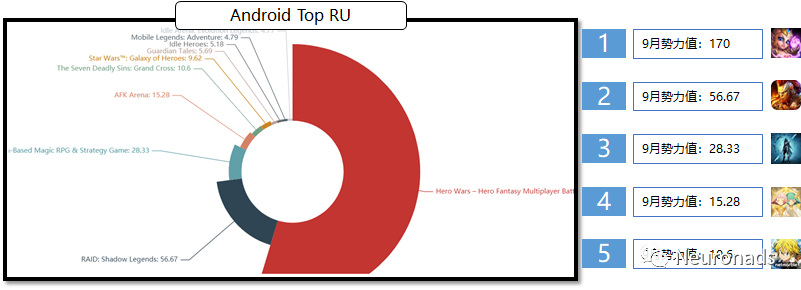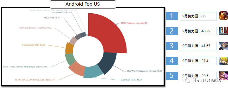 TomClancy's Elite Squad 于 8 月底上线,立即斩获美国GAME 榜下载量第一,在 RPG 分榜第一的优异成绩也保持了很长时间。可惜其吸引付费的能力不足,畅销榜的排名不尽人意,导致本月的综合势力值很低。