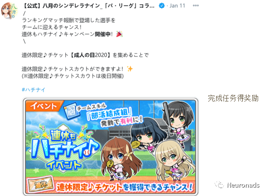 活动形式:完成任务得奖励、节日 Gacha 等。