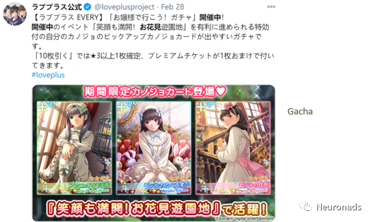 活动形式:节日 Gacha,促销,与恋爱相关的剧情。