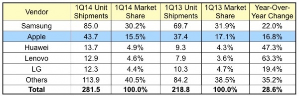 IDC:2015年第一季度日本智能机出货量同比增长7%