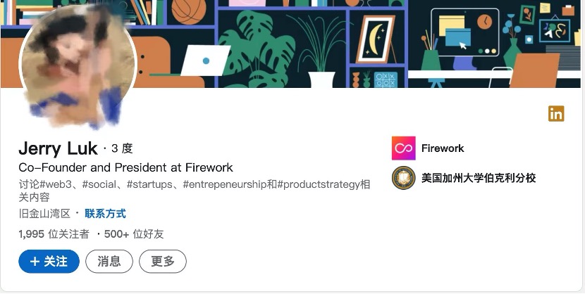 Firework 成立于 2017 年,根据领英统计,Firework 的员工坐标美国和印度的占大多数。2 位联合创始人 Vincent Yang 和 Jerry Luk 都是华裔,分别毕业于斯坦福和加州大学。在坐标美国的员工中,其实有不少的中国面孔,他们有的本科从复旦、北大毕业,研究生前往美国,之后有多段大厂工作经验,有的则是直接在海外读书,在当地工作。笔者粗略统计,这部分员工在 Firework 中的职责覆盖到软件开发、设计、市场运营等。除了笔者重点观察的中国面孔,Firework 的各地员工都有不错的工作背景。