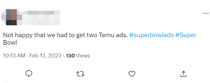 而今天,Temu 又投了超级碗决赛夜的广告,在此之前的几年,这么豪气的广告主都是 Coca Cola、Binance、通用汽车...对此,美国人民表示很酸。