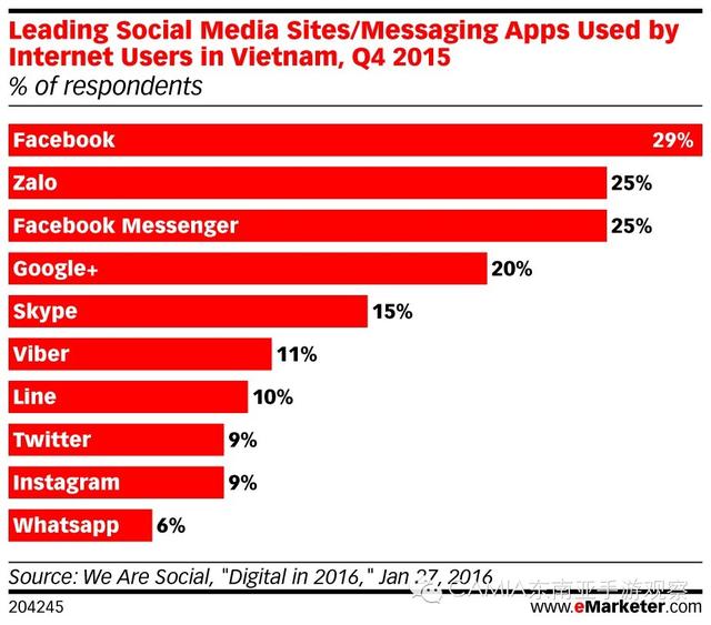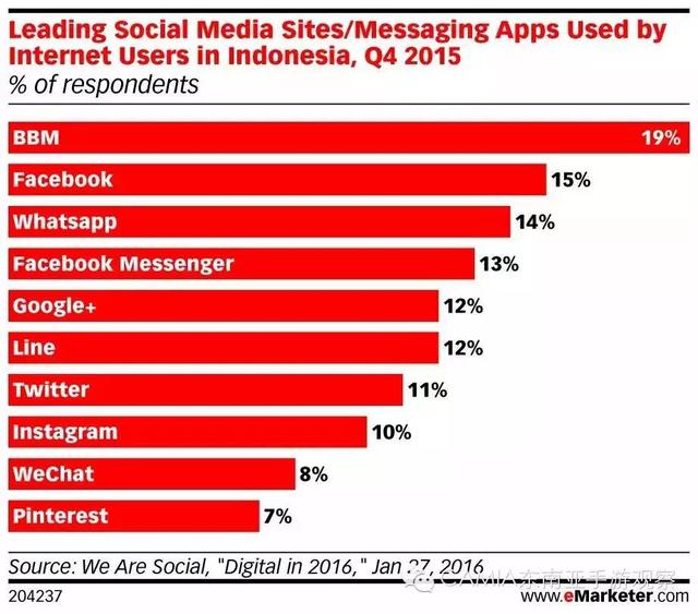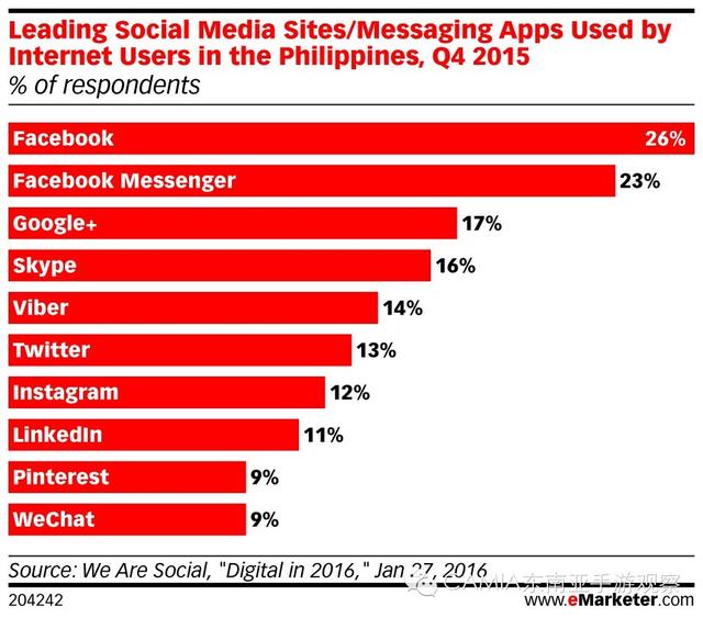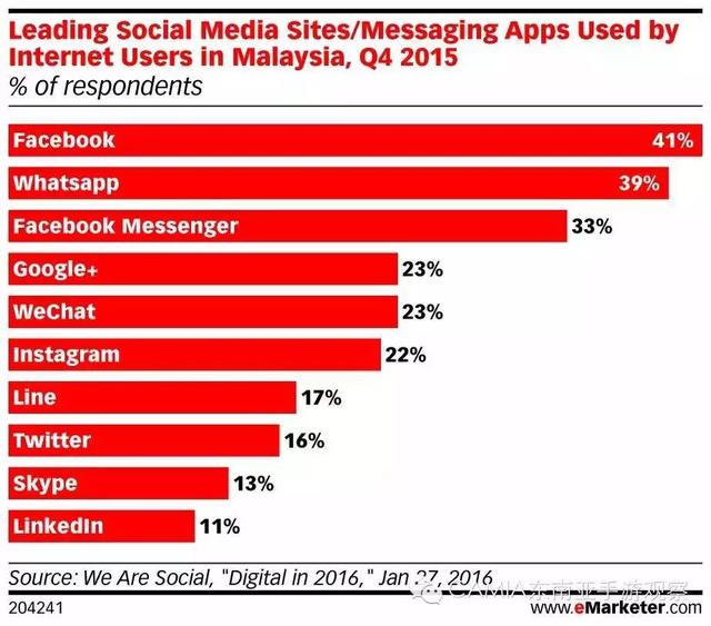 相信不少关注东南亚市场的人,或多或少都对东南亚国家使用的社交媒体和即时通信工具有所了解。但众多的社交工具中,究竟哪一款才是当地人们心中的最爱?我们从下列eMarketer的数据图表中可一探究竟。