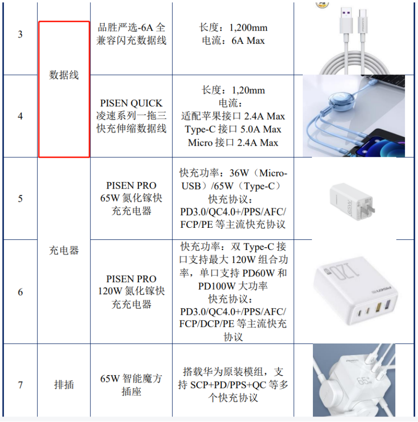 品胜是安克创新(Anker)与绿联的对手,主营充电产品和数据线。