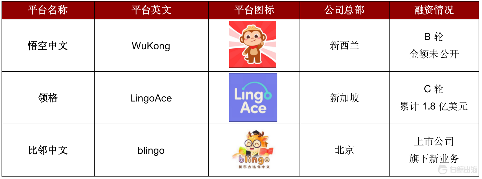 实际上除了孔子学院等官方机构,也有不少来自国内和海外的教育公司,也在为此而努力。通过与多位国际中文教师与家长对话,我们发现“悟空中文、领格和比邻中文”三家基本算是行业内第一梯队的机构,业内也将三家的竞争比喻为“猴子、老虎与小鹿的战争”。