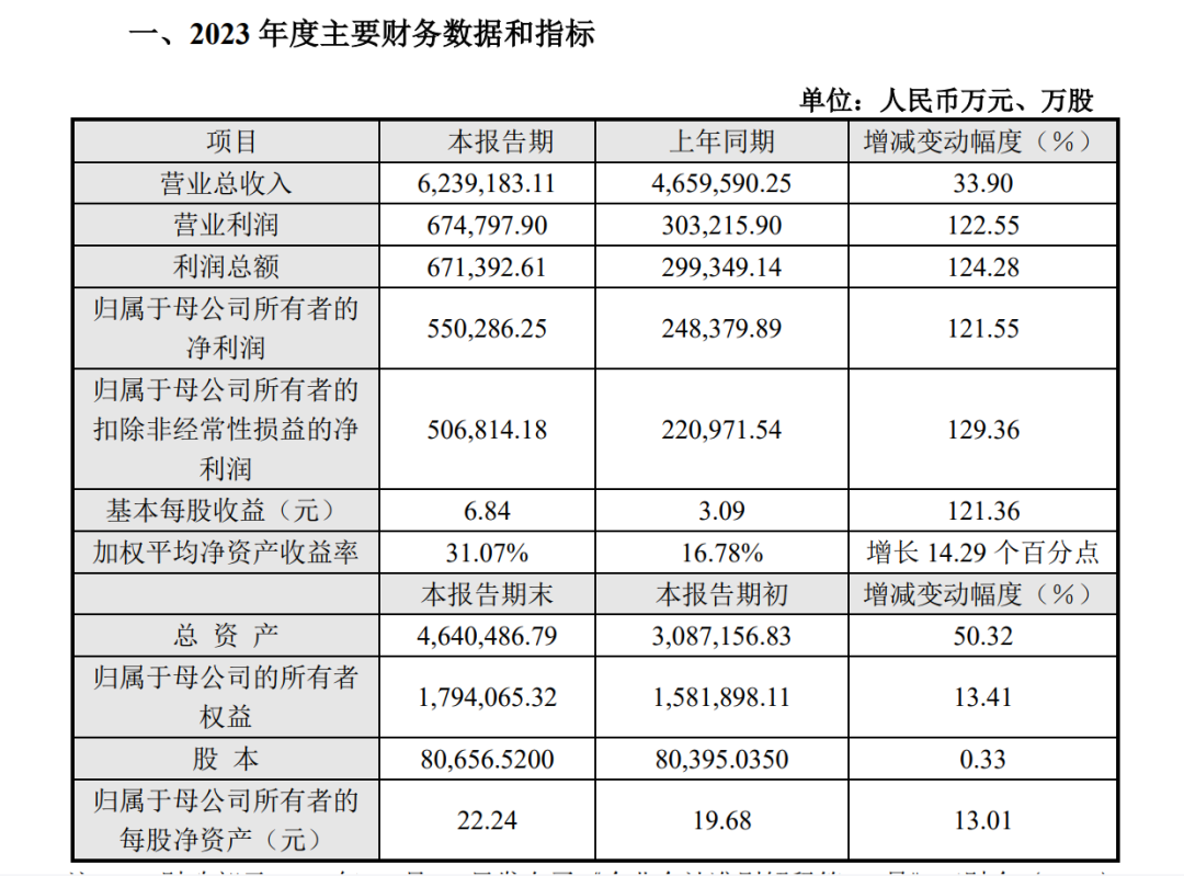 2023 年,智能手机出海品牌传音实现营业总收入 624 亿元,较上年同期增长 33.90%;归母净利润 55 亿元,同比增长 121.55%;基本每股收益同比增长 121.36% 至 6.84 元。