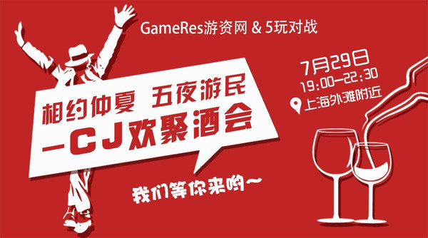 一年一度的ChinaJoy展会不仅仅是全国玩家的狂欢节,更是游戏行业广大从业人员的欢聚盛世。为了迎接2015年ChinaJoy展会的到来,GameRes游资网与5玩对战相约于7月29日晚在黄浦江畔举办主题为“相约仲夏 五夜游民”的游戏行业线下交流酒会。
