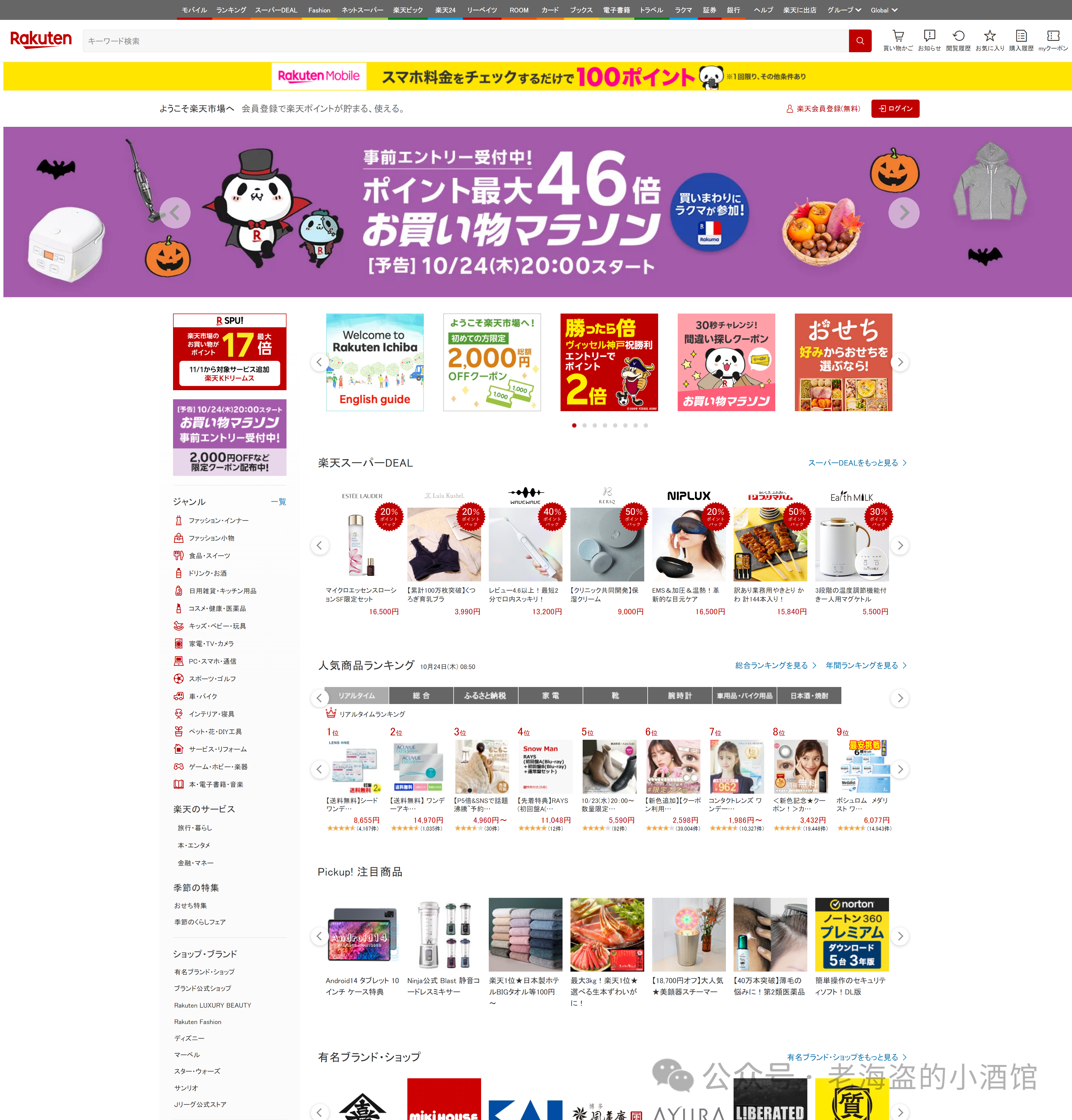 乐天和京东页面复杂,京东甚至夸张到下面的商品推荐流是无限拉取,也就是永远拉不完。