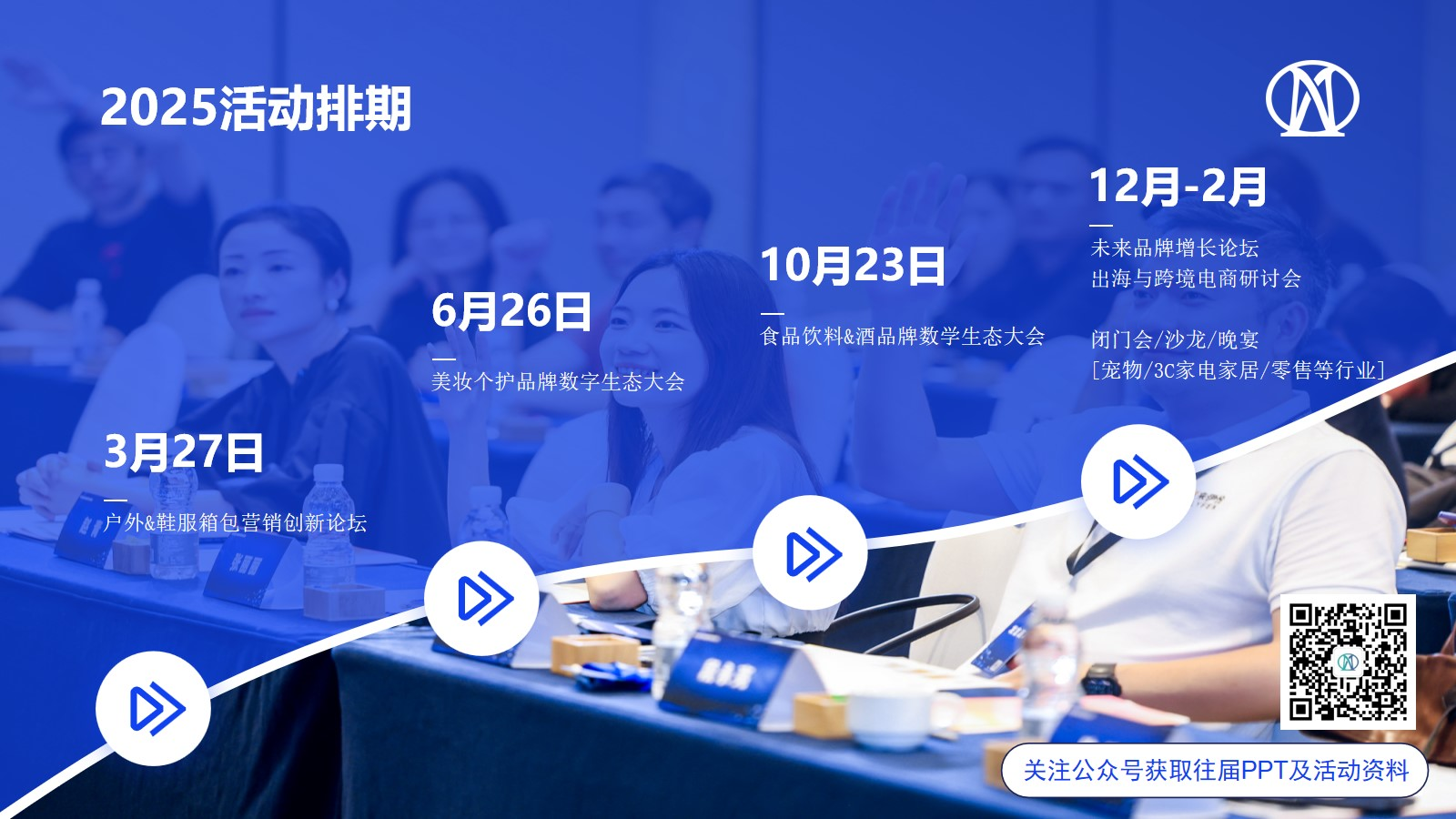 FUTURE MARKETING 是聚焦【数字+科技 赋能品牌与生意增长】的会议论坛主办方。帮助品牌创始人与 IT 及营销决策者,汲取行业经验&洞察,快速链接数字生态上下游的伙伴与品牌友商。我们拥有整合型媒体资源,可帮助 B2B 企业打造商业化市场传播方案,助力企业品牌升级,商业对接。资源聚焦:消费零售、汽车、美妆个护、食品&饮料、鞋服箱包、3C&家电、户外&露营等行业。2025 年活动规划:户外&鞋服箱包营销创新论坛、美收个护品牌数字生态大会、食品饮料&酒品牌数学生态大会、未来品牌增长论坛暨出海与跨境电商研讨会、闭门会/沙龙/晚宴 [宠物/3C 家电家居/零售等行业] 。