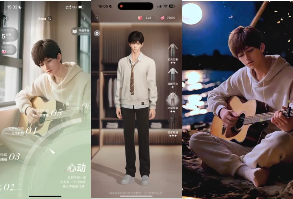 我们发现,一些用户会在体验之后把「EVE」定义为一款“接入 AI 的乙女游戏”。的确,从 3D 角色建模到好感度系统、剧情任务,再到换装、家园和陪伴玩法,「EVE」的确继承了一些游戏玩法——以及还有用户吐槽,AI 角色 Aven 看起来像是乙女游戏顶流男主的融合体。
