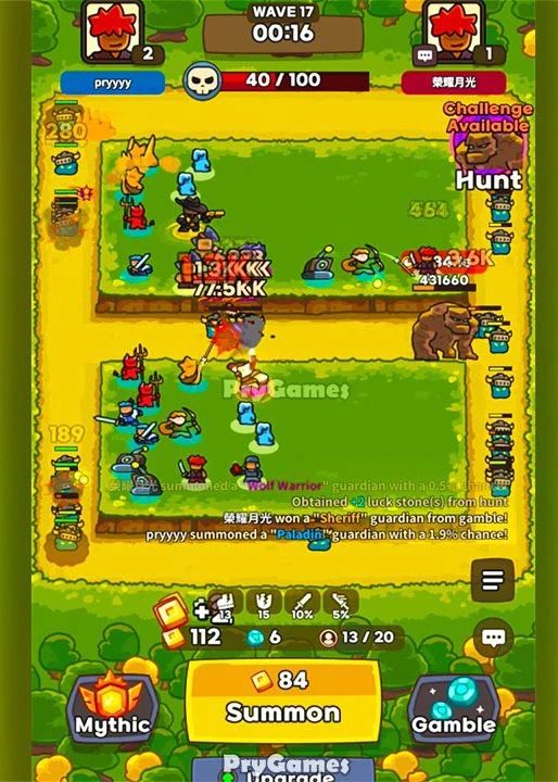 与强调高难度挑战的原版不同,开发团队将《Lucky Defense!》的单一大关卡拆解为多章节渐进式关卡,每关设置阶段性奖励,大幅降低挫败感;同时加入“领主”角色作为局外养成核心,领主可以全场攻击的特性使其成为前期稳场的支柱,开局放置领主后快速召唤基础英雄积累银币是标准起手式。同时,领主可提供全局属性加成,并通过排位赛模式增强长线竞技动力。当玩家召唤失败时,原版中刺耳的嘲讽音效被替换为较为平稳的音效,失败情绪被消解为节目效果,契合国内用户追求轻松解压的偏好。