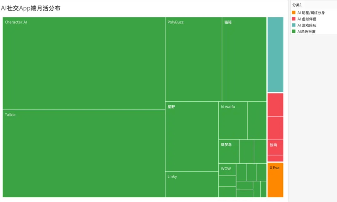 4 月 AI 社交 App 月活分布,陪伴向产品占比不大