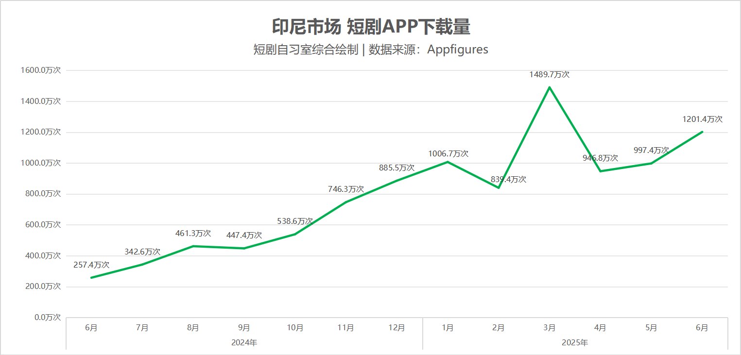 2025 年 6 月印尼市场创造超 1201.4 万次下载,与 2025 年 5 月的 997.4 万次相比,增长 20.46%。