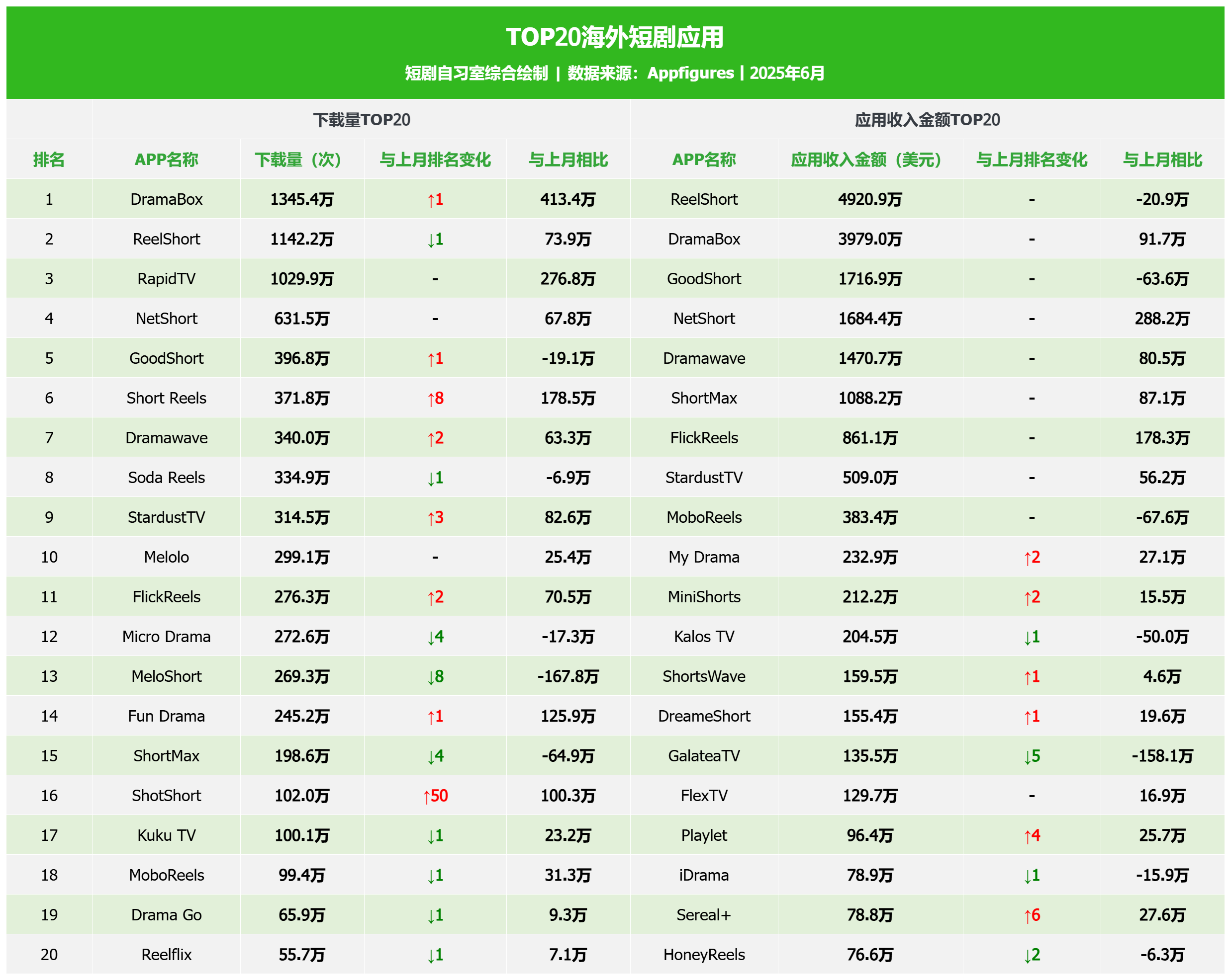 6月海外短剧:收入逼近2亿美元大关,免费应用持续发力埃及市场