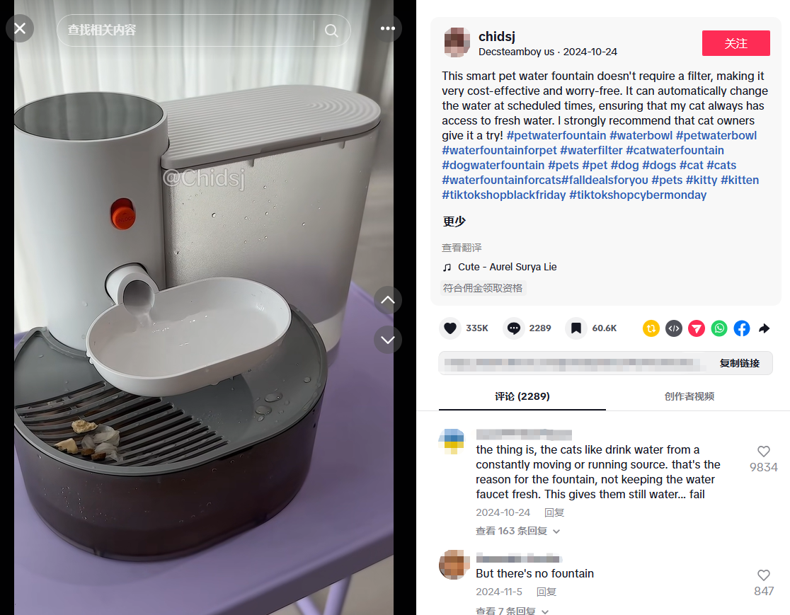 49 秒,销量破两万,GMV 超 87 万美金——Petgravity 智能宠物饮水机,在 TikTok 上用一条“毫无剧情”的产品讲解视频,跑出了宠物用品赛道现象级爆单。