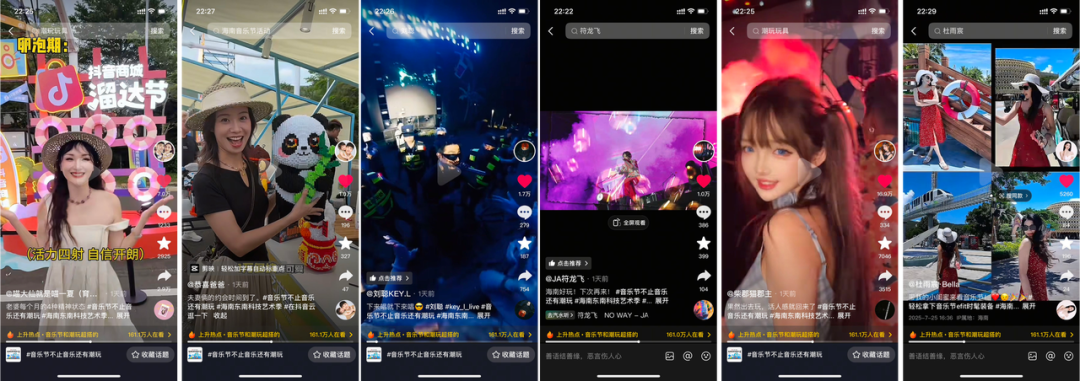 潮流音乐与海岛夜色、科技光影、沙滩氛围完美交融,为观众奉上一场沉浸式视听盛宴。现场人气持续攀升,两日累计观众突破 9,000 人,相关话题内容多次登上抖音等社交平台热榜,引发广泛关注与讨论。