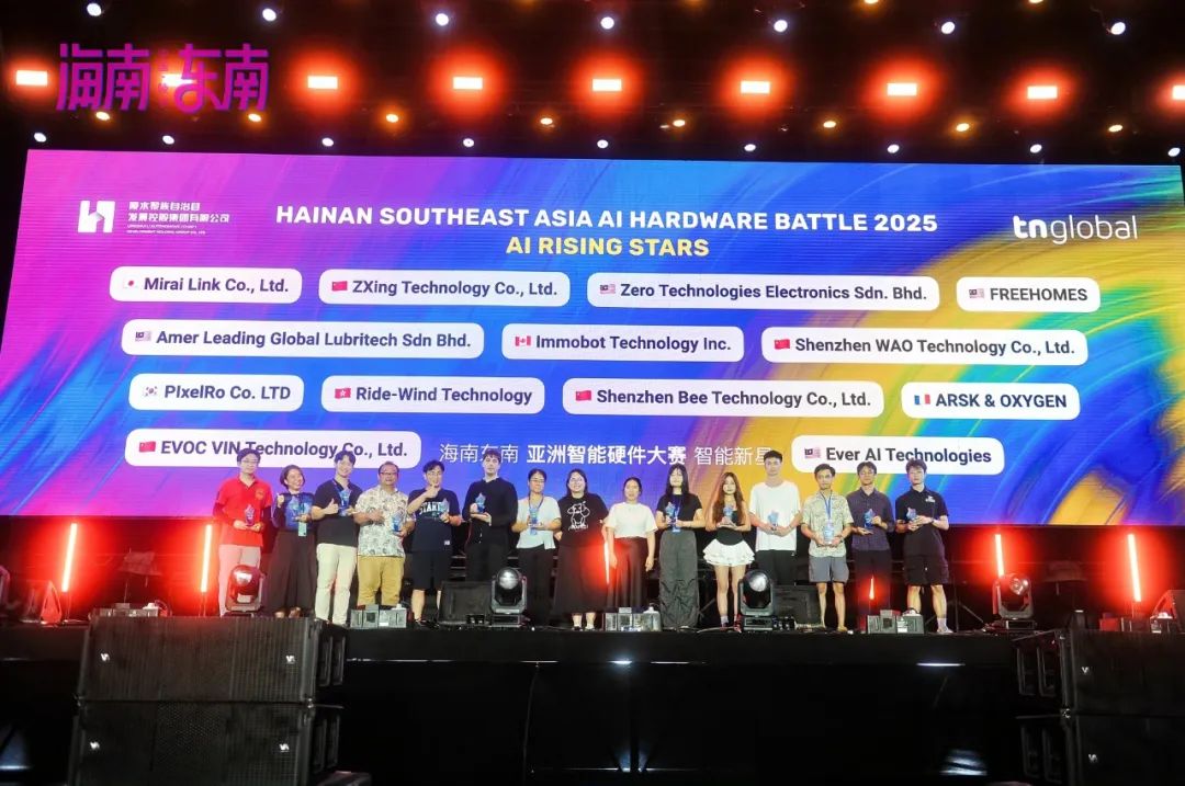 作为 2025 海南东南科技艺术季的旗舰赛事,首届“海南东南亚洲智能硬件大赛(HNSE AHB)”于 7 月 26 日在海南陵水圆满落幕,并于 27 日举行隆重颁奖典礼,表彰在AI硬件领域具有突破性创新和商业潜力的先锋项目。
