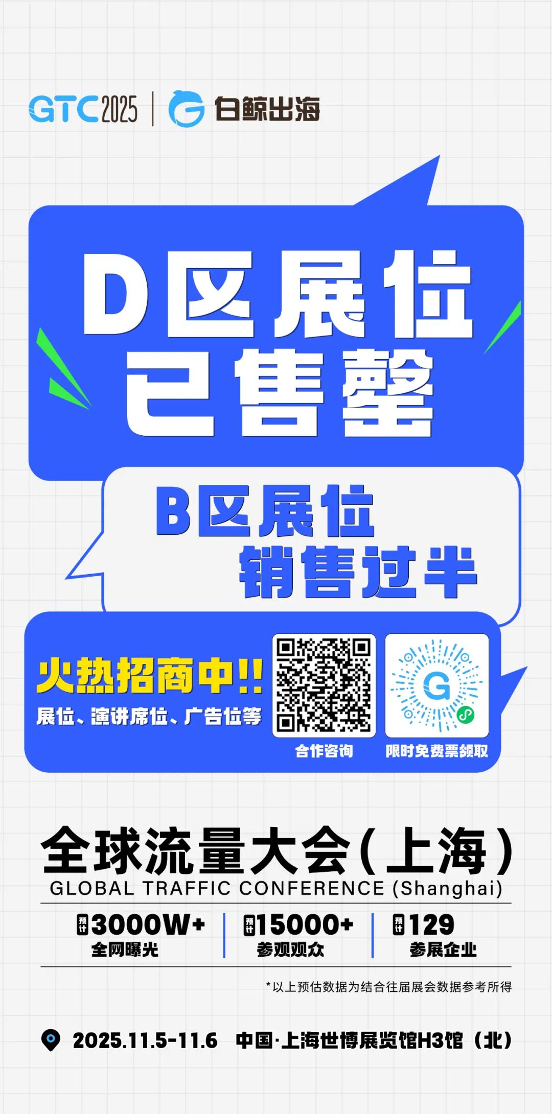 GTC2025 全球流量大会(上海)开幕在即,招商进度已过半,白鲸邀您“拎包参展”