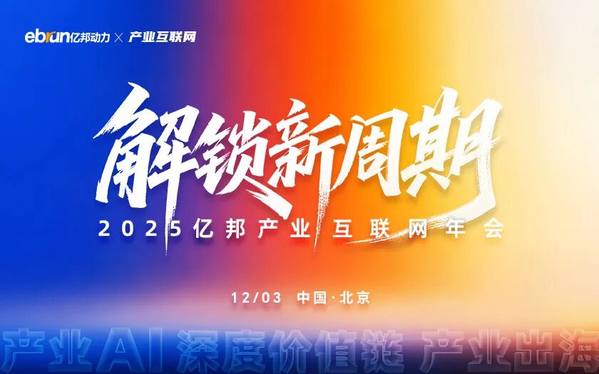 事关你我,事关产业希望。在各界的帮助下,亿邦动力倾力举办“2025 亿邦产业互联网年会”,希望能为产业互联网开山辟新路、发现新标杆,印证相互方向,共同完成解锁新周期的 “惊险一跃”。