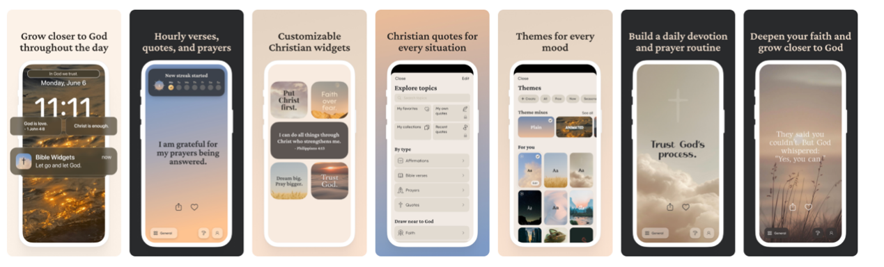 如果说「Bible Chat」做的是用 AI 重构圣经交互以及礼拜方式,那「Bible Widgets」则是用产品的极简化设计让宗教实践变得更“轻”。