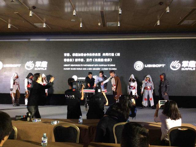 铁雷:今天除了沛总说了饥饿鲨的项目,还有一个项目,我是掌趣科技负责研发的副总裁,铁雷。今天非常有幸代表育碧和掌趣共同宣布我们掌趣获得了育碧的刺客线条的正版授权,将会打造MIP的手机游戏奉献给玩家。刺客线条是育碧公司最顶级的一个IP,从2007年11月这个游戏第一代上线到现在九年的时间,大概九年的时间,这个IP做到什么样的量级呢?基本上是载誉无数的IP,我们得到这个IP之后掌趣拿出我们最好的研发团队和最雄厚的资源保证它的成功,同时也和育碧的同事进行了非常多的交流,包括今年的3月份可能我们的团队到蒙特利尔,在蒙特利尔的工作室进行了很长时间的交流和探讨,目的是使我们的游戏能原汁原味体现这个游戏的理念和精髓,同时也为大众化地区的游戏玩家量身订作一些设计,更符合大众化地区玩家的需求。这个好消息就在这给大家宣布完了,借着这个好消息,我们邀请沛总和AurelienPalasse来切一个比较大的蛋糕,预祝我们的项目能大卖,也请大家一起分享。