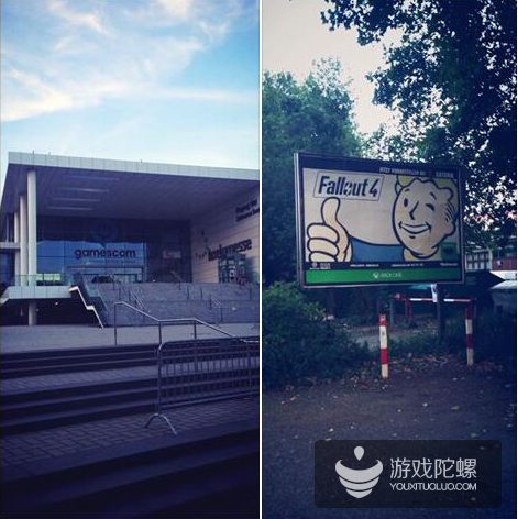B社在E3展上正式公布了《辐射4》后,就把这股热潮带到了科隆,在展馆附近随处可以看到《辐射4》的宣传海报,《辐射4》将在今年的11月10日正式上市。