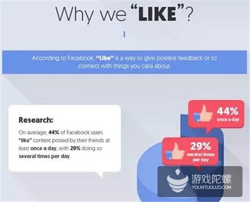 ·44%Facebook用户每天点赞1次;29%的用户每天点赞多次。