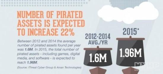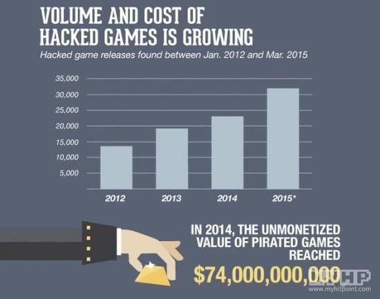 根据Arxan科技提供的一份报告显示,“2014年盗版游戏涉及的金额达740亿美元”。此外,在2012年至2014年间,平均每年的盗版(包含游戏,软件,数字媒体产品)数量达160万份,而在2015年底,这个数字有22%的增幅,达到196万份。