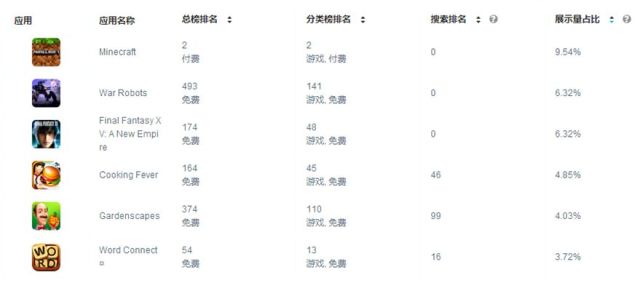 最后是左下角的红框,显示了当前关键词下的排名,这些App也就是你的竞品了,分析它们是主要的关键词来源。理论上讲,竞品分析的越多、越细,得到的关键词就会越多,当然,一开始这也是一个非常耗时的过程,不过一切都是值得的。