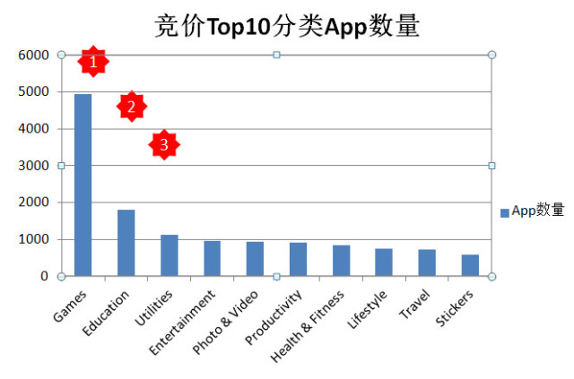 最后,需要提醒大家根据最新的苹果竞价广告统计,用户大部分情况下搜索的词是在2-3个之间,也就是词组。因此在选择关键词的时候最好也以词组的方式,确定词库后把最想获取到流量的词放到标题里,其余的词排重后填入后台,全部以英文逗号隔开,不要带空格。比如racing game,car racing,就在后台填入racing,game,car就可以了。