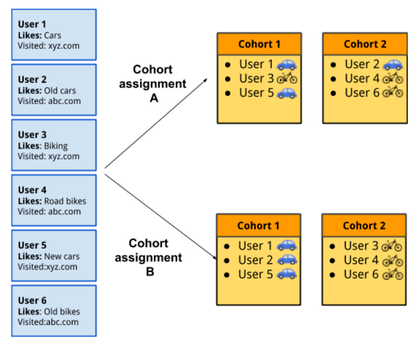 谷歌在 FLoC 通知中提示,Chrome 浏览器将一个用户的浏览行为,与其设立的“大型群组”或“同类群组”(Cohort)进行匹配,然后相同轨迹和兴趣的人,分到相同和类似的群组里。