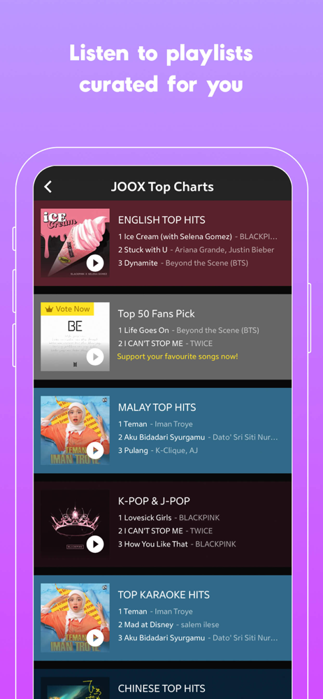 Stream songs, playlists, music radio, audiobooks, and more with JOOX Music.