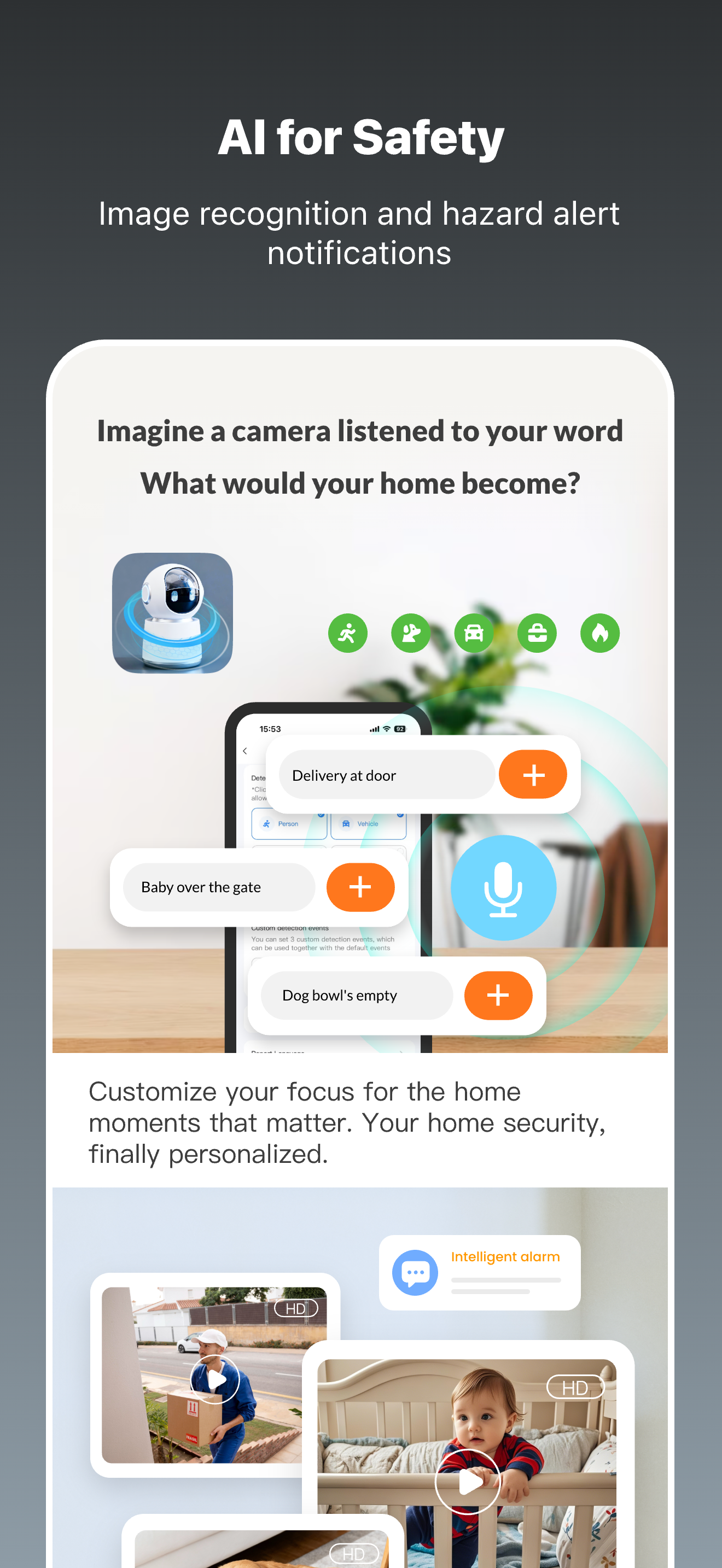 • Home Security: Stay connected to your home 24/7 with real-time monitoring and instant alerts when something's not right.