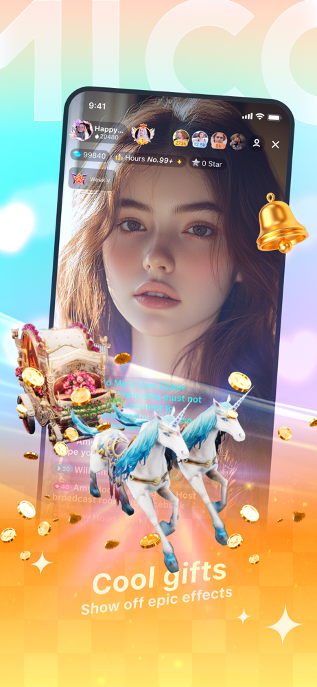Global live stream, Live chat in chat room, Live single & multi-user guest call rooms with friends.