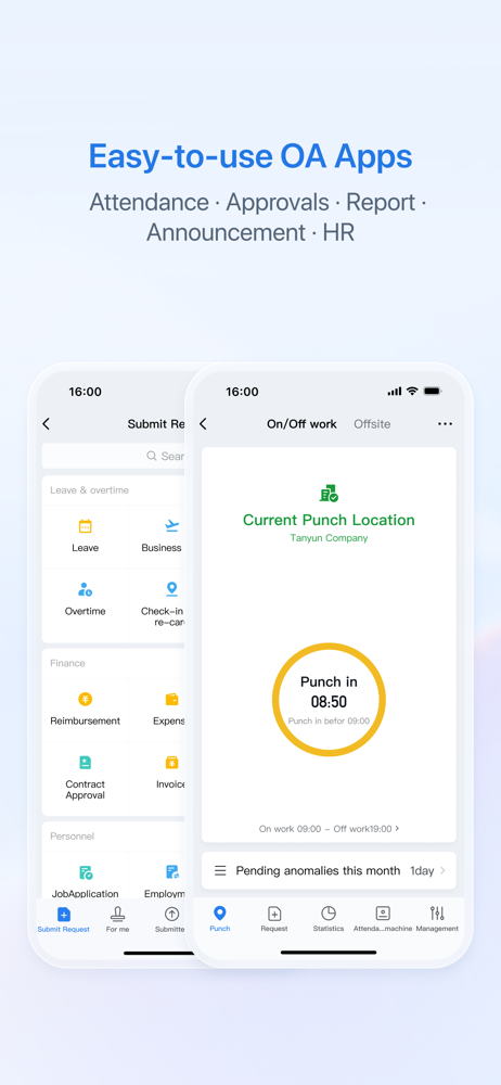 [Basic Office Apps] Preset ready-to-use office apps such as Attendance, Approvals, Reports, Announcement, and Forum.