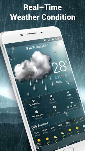 ⛅This daily weather app can display current temperature, daily and hourly forecasts, sunrise and sunset time, humidity, wind speed, air pressure and UV index