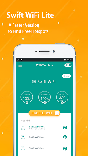 Connecting to nearby WiFi hotspot is faster and easier than ever with the Swift WiFi Lite app! Use Swift WiFi Lite - Free WiFi Map to search for shared free WiFi hotspot and connect to it automatically.