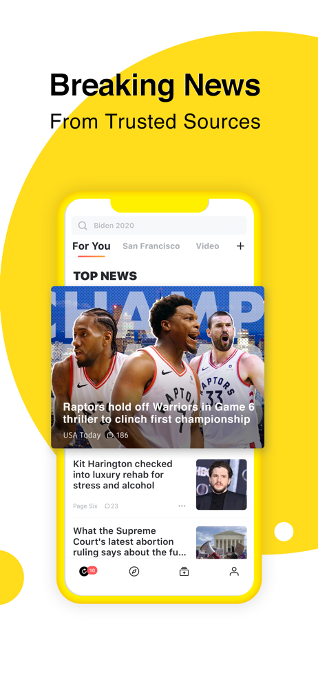 Your “For You” channel is just for you. Get breaking news from top-tier news outlets (CNN, NYTimes, AP, etc), and trending content like funny videos right in your personalized feed.
