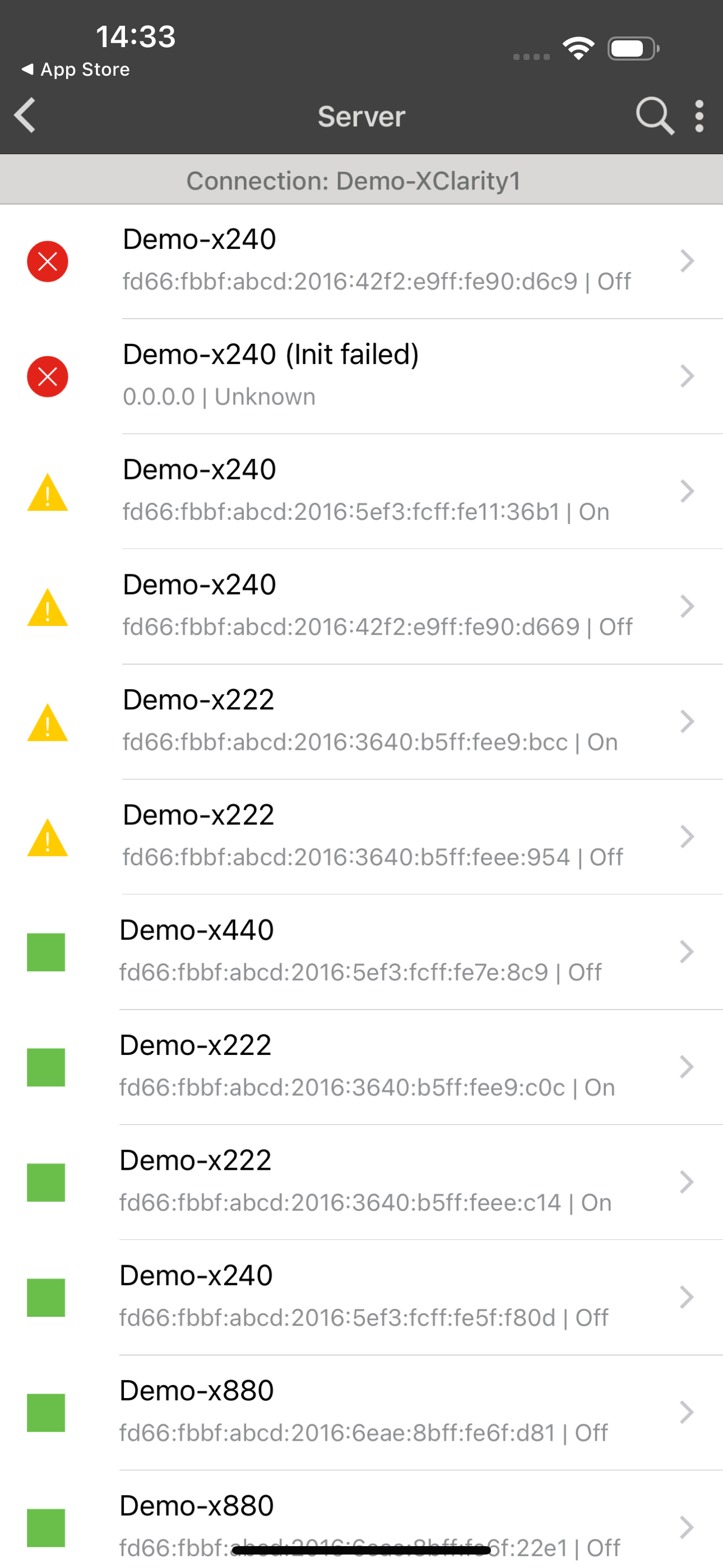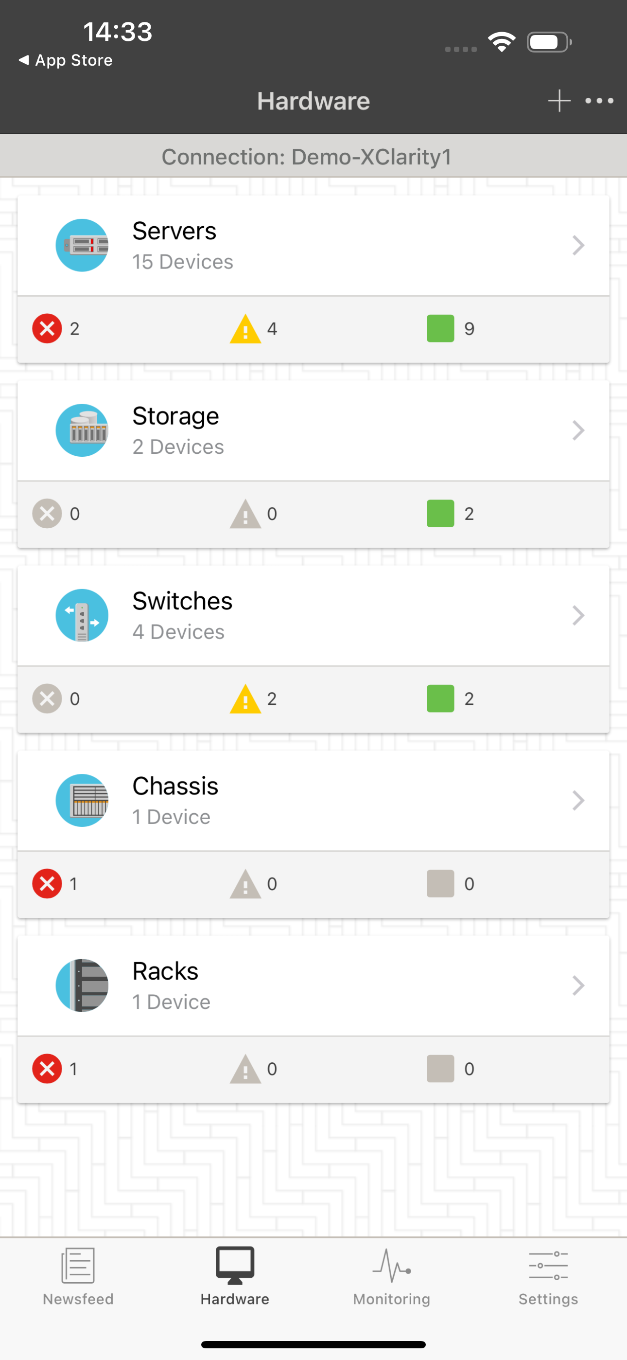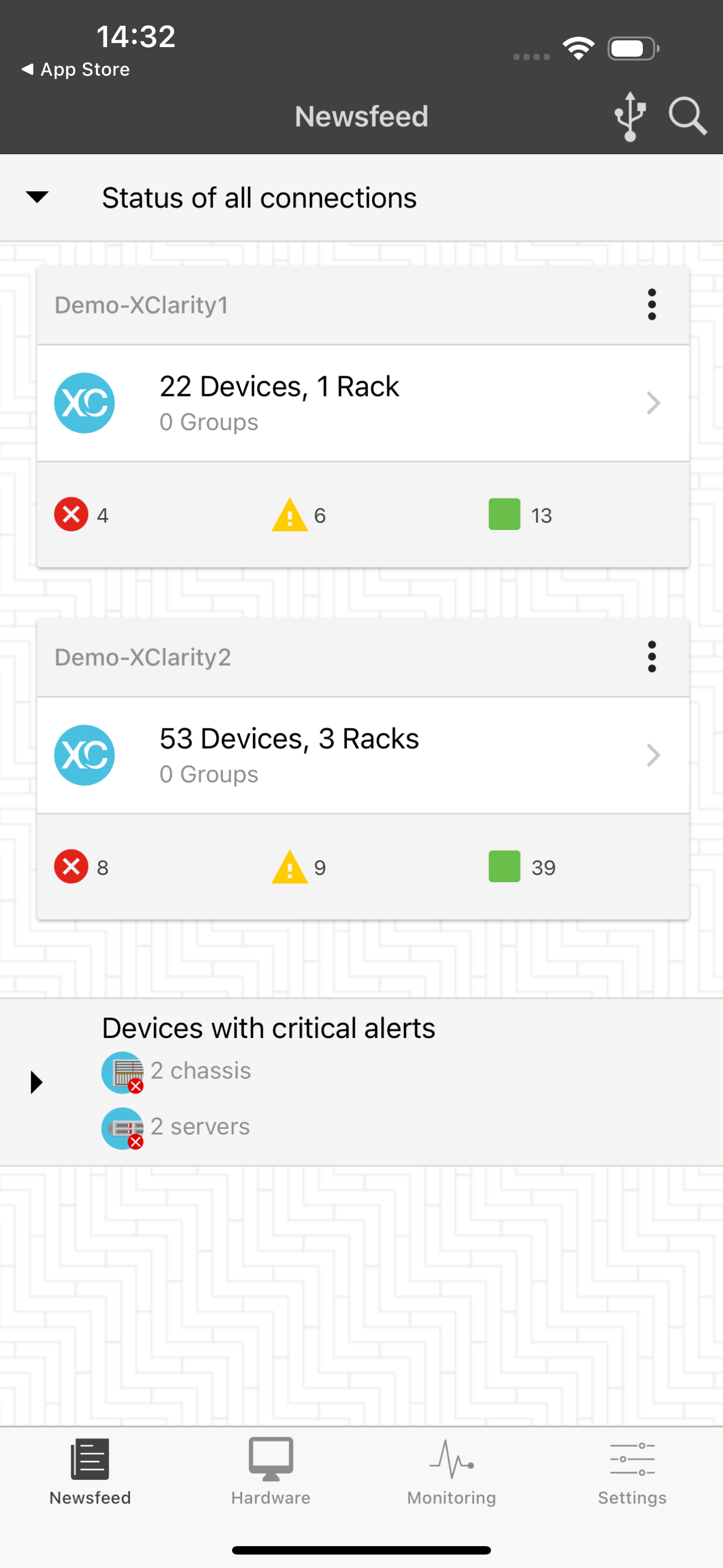 • View the status summary of each connected Lenovo XClarity Administrator.