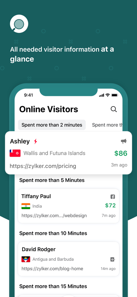Zoho SalesIQ is an unique live chat software with website visitor tracking, app visitor tracking, lead scoring and analytics all rolled into one for growing businesses. We've built it to maximize the ROI on your content, SEO, Adwords, and email marketing efforts.