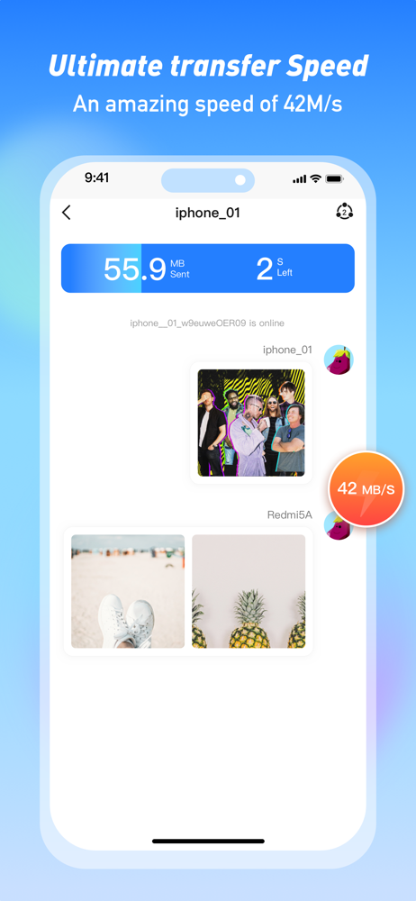With 200 times faster than Bluetooth, the highest speed goes up to 42MB/s. Share and receive files without any data consumption, transfer files without any quality loss.